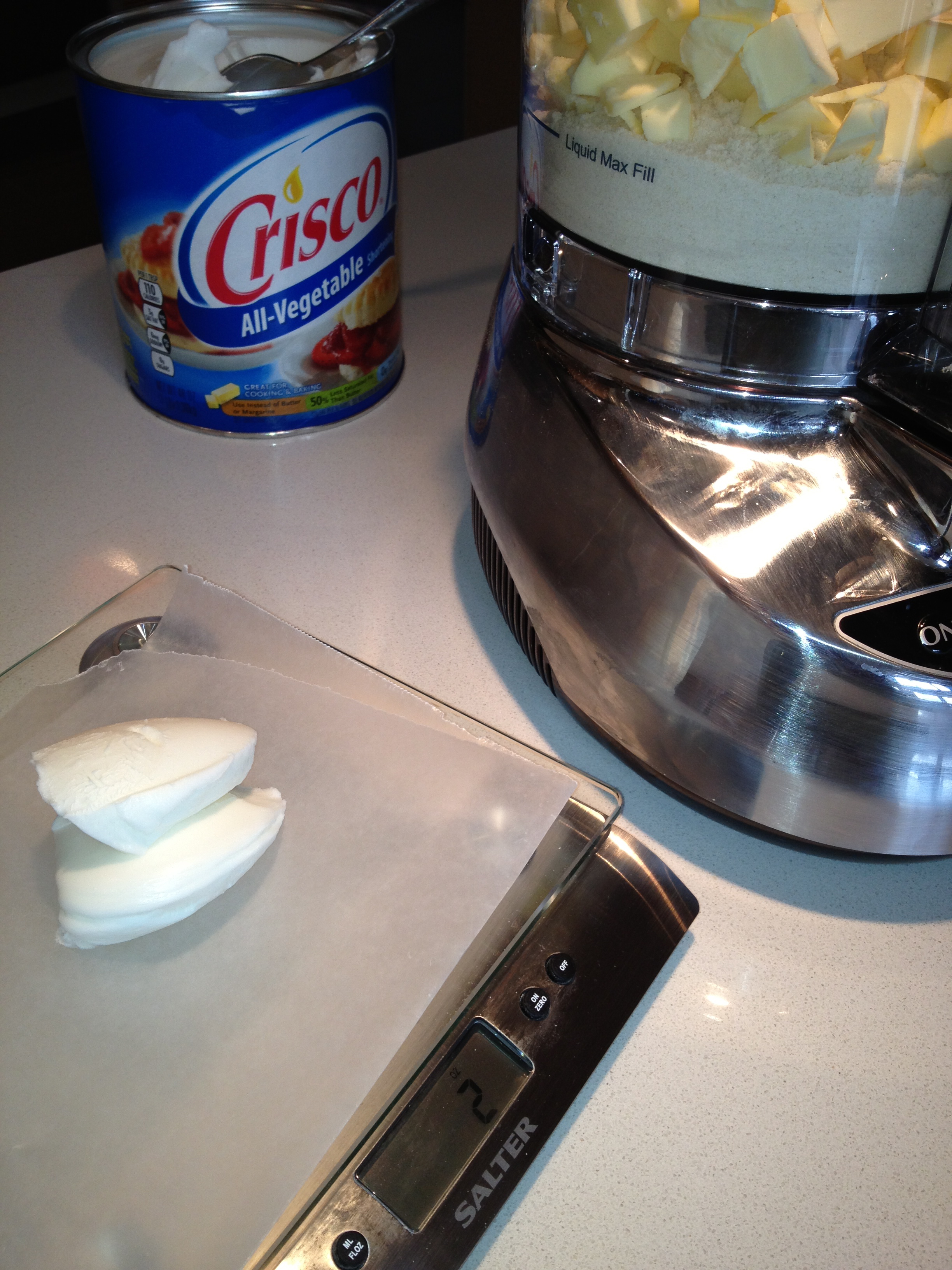 IMG_1057 Published January 22, 2013 at 2448 × 3264 in Pesto, Cheese, Bacon Quiche ← Previous Next → Weighing the vegetable shortening – easier than scraping it out of a measuring cup