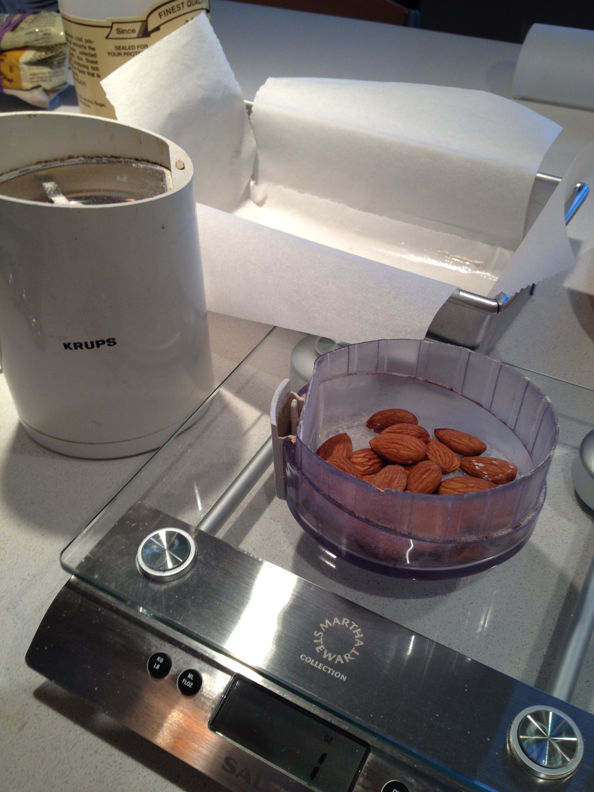 IMG_1623 Published February 16, 2013 at 2448 × 3264 in Vegan Banana Bread with Almond Glaze ← Previous Next → Weighing the almonds to grind