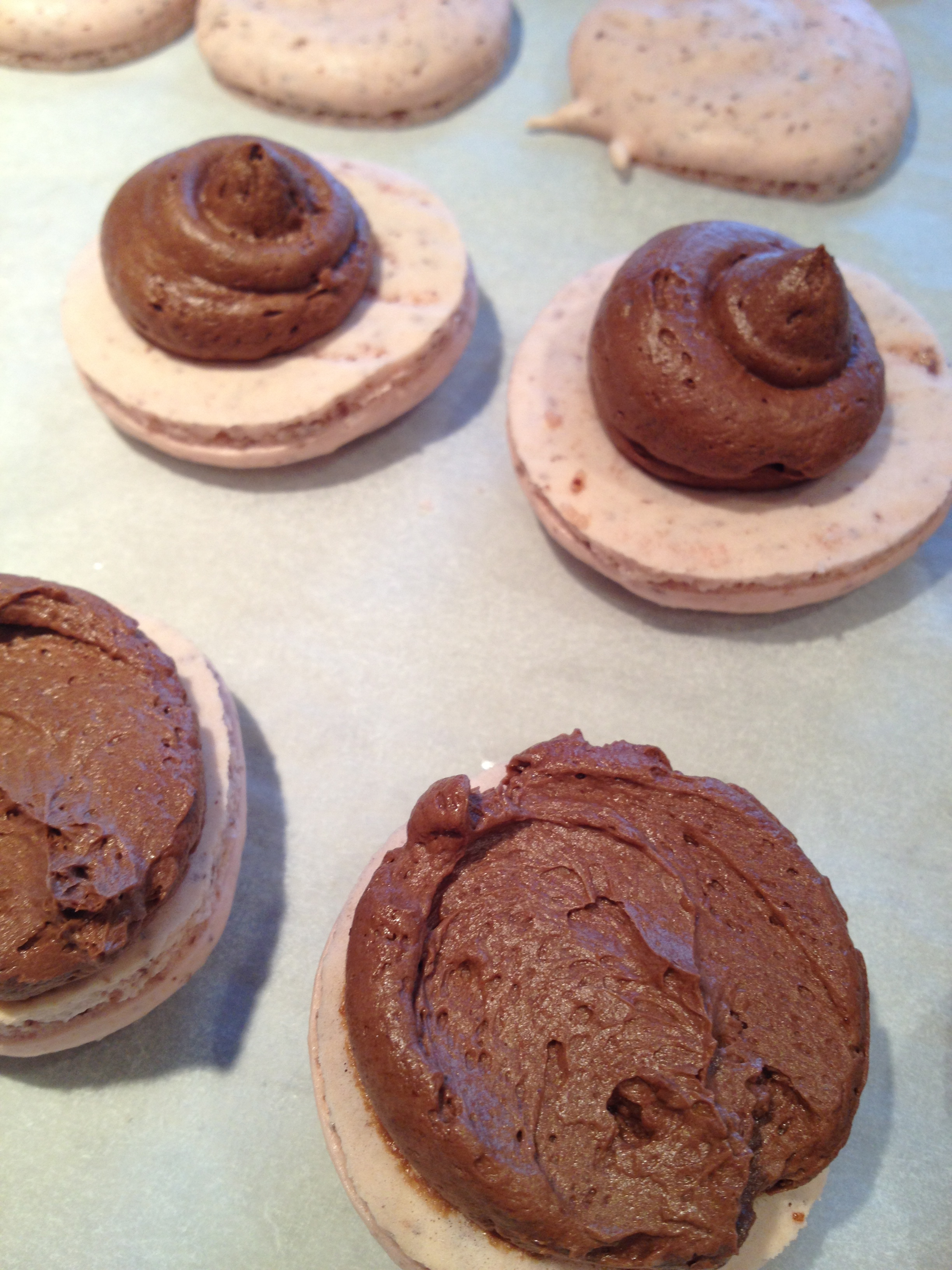 IMG_1734 Published February 20, 2013 at 2448 × 3264 in French Macaroons, or (parlez vous Francaise?) Macarons! ← Previous Next → Smooth out the filling with a knife – the cookie are lighter than the buttercream, so pressure alone won’t force the filling to the edges