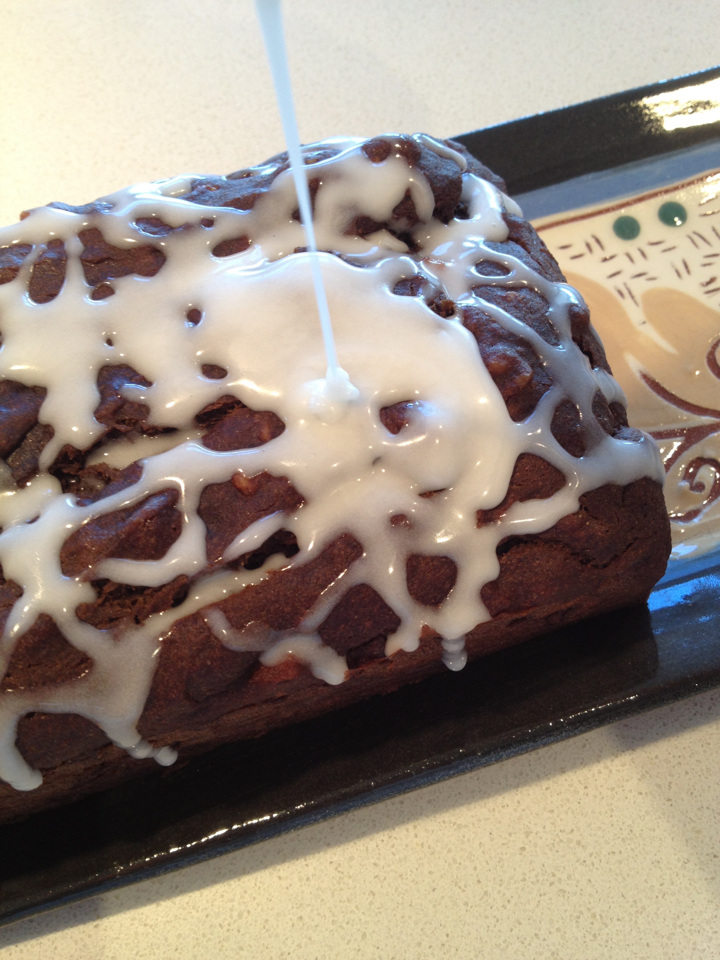 IMG_1680 Published February 20, 2013 at 2448 × 3264 in Vegan Chocolate Banana Bread ← Previous Next → Drizzling with almond glaze; next time: vegan chocolate ganache!