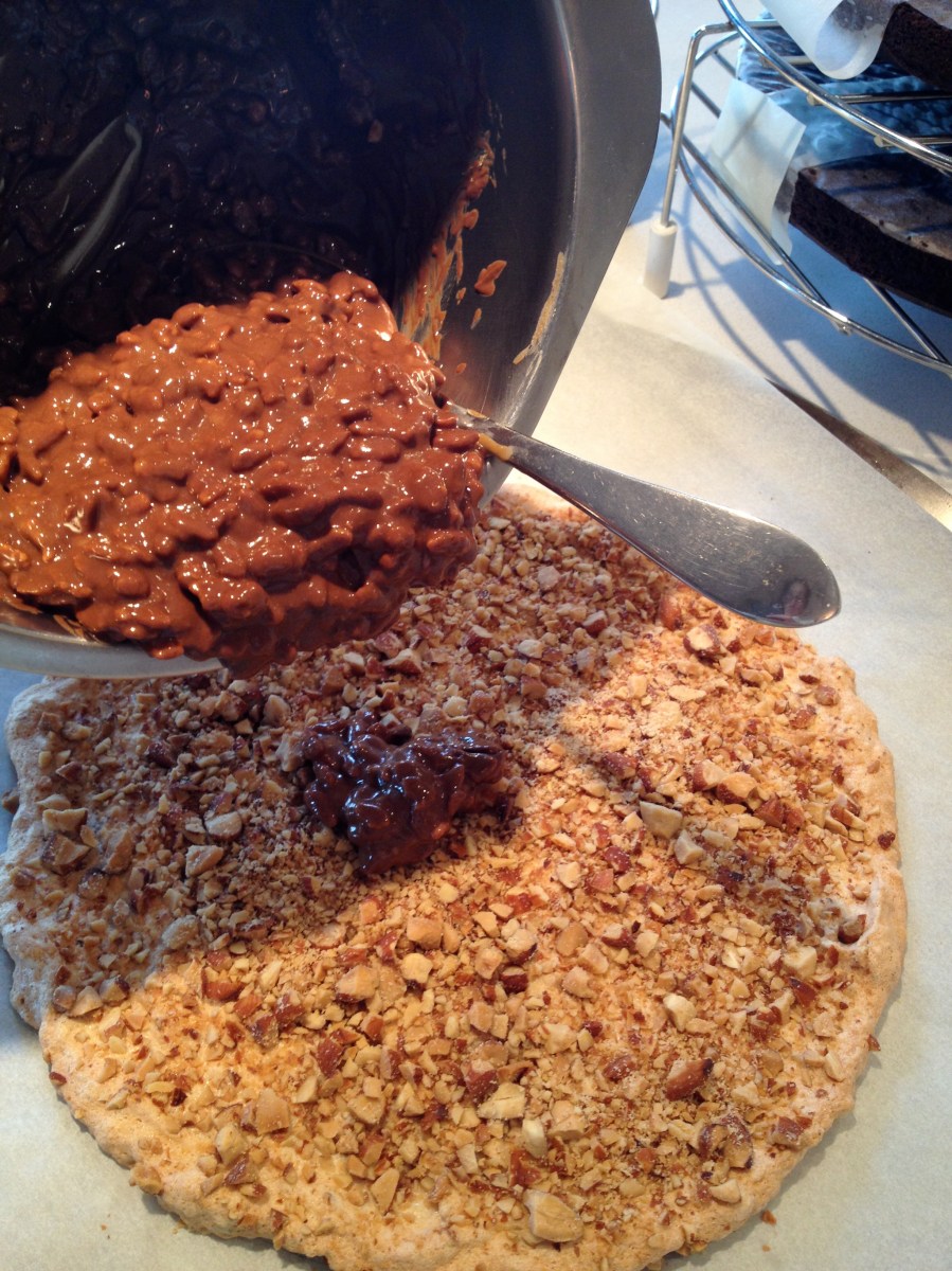 IMG_1822 Published February 24, 2013 at 2448 × 3264 in Gluten-free Chocolate Peanut Butter Cake ← Previous Next → Crispy peanut butter chocolate on the cooled meringue layer