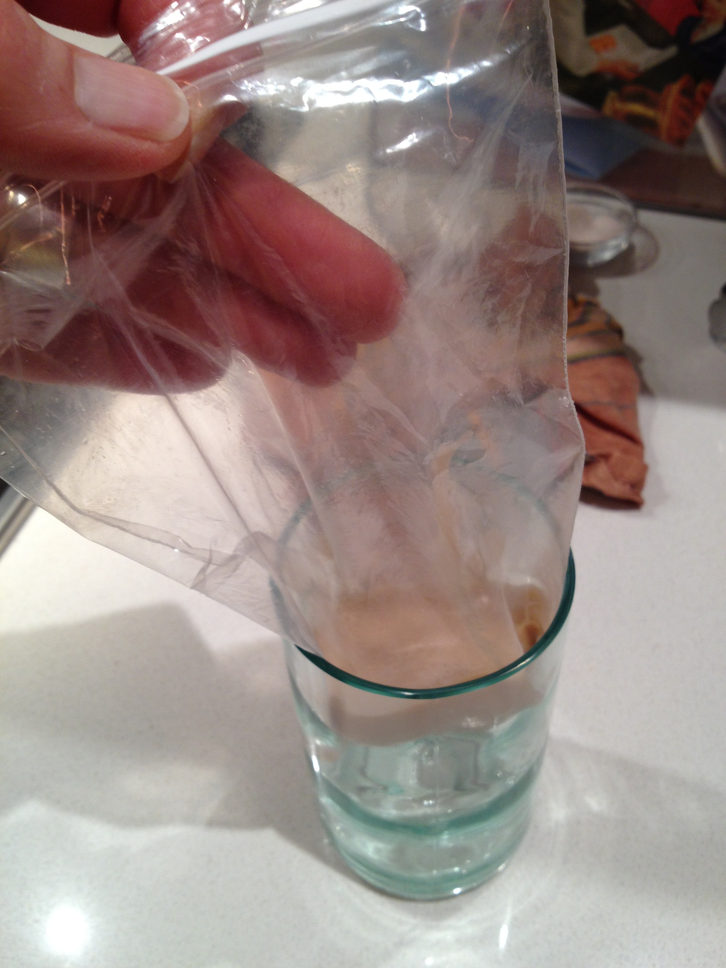 IMG_2770 Published April 10, 2013 at 2448 × 3264 in Gluten-free Maple Walnut Scones ← Previous Next → Icing into a baggie (supported by a glass