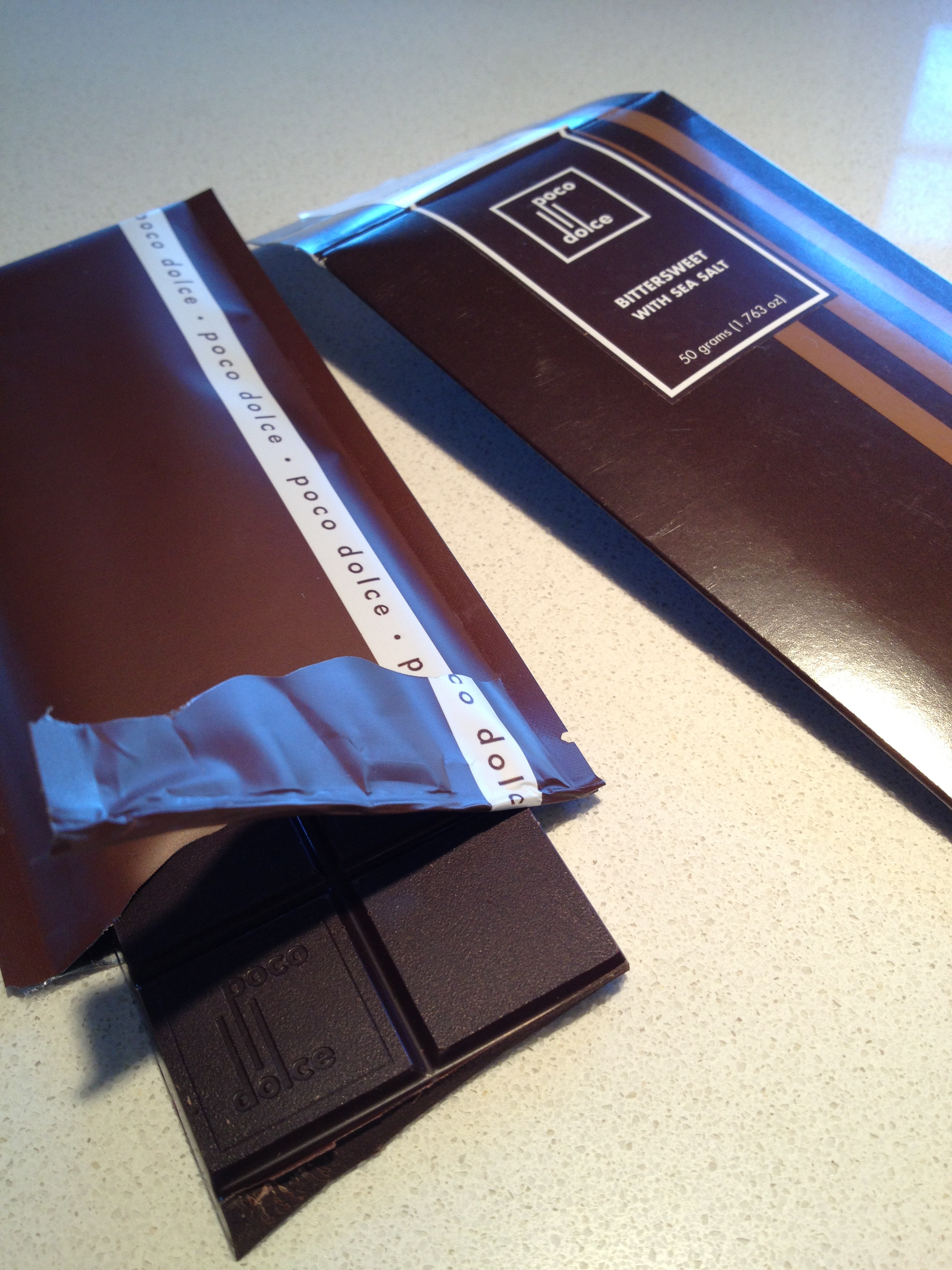 At about the same time Dori gave me two bars of San Francisco’s Poco Dolce’s Olive Oil Sea Salt Chocolate, also excellent: http://www.pocodolce.com/ . I’d splurge on chocolate from either company again.