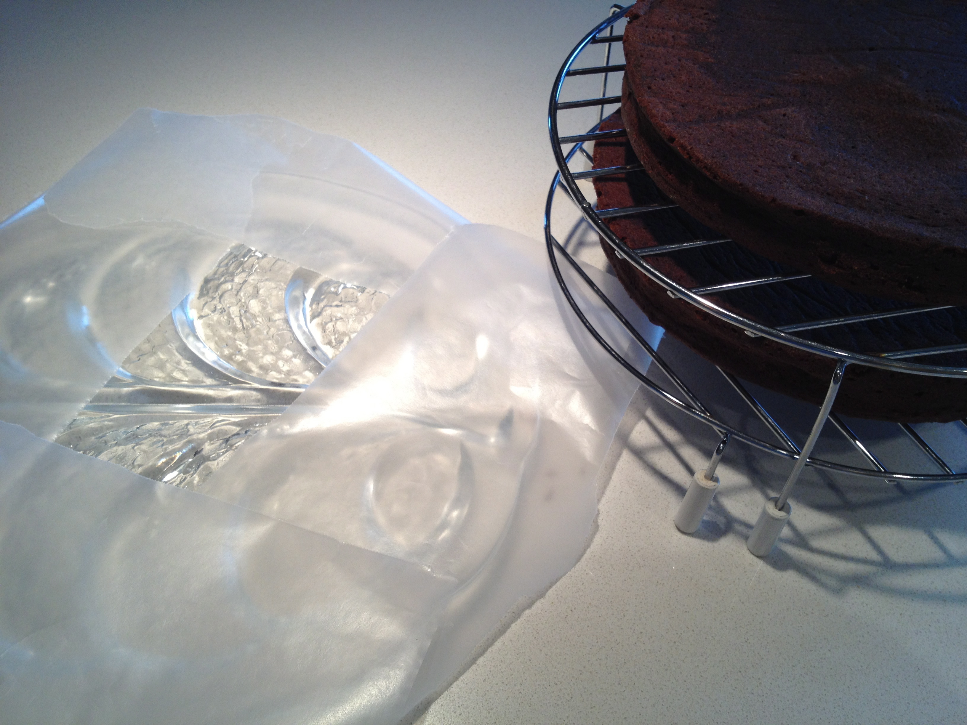 IMG_3554 Published May 23, 2013 at 3264 × 2448 in Decadent Chocolate Chocolate Cake ← Previous Next → Laying the waxed paper on the cake plate