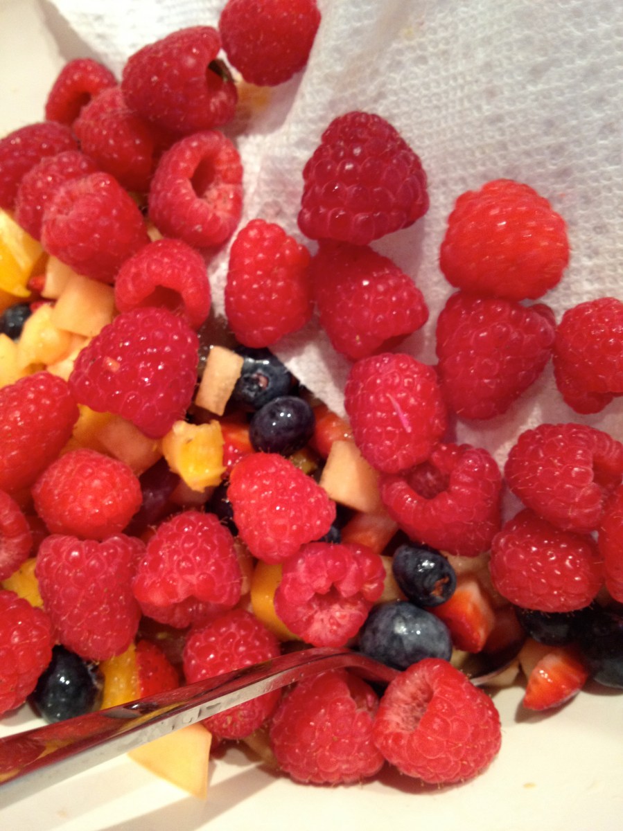 IMG_3497 Published May 23, 2013 at 2448 × 3264 in Presentation is Everything: Fruit with Lime Yogurt ← Previous Next → Dried the raspberries on a paper towel before transferring to the bowl